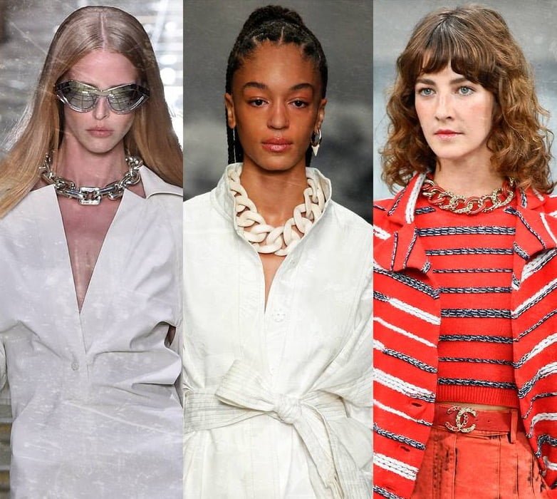 Chokers remain high on must-have fashion lists. This year bigger is better in terms of links, with chunky styled chokers having flooded the catwalks. In all honestly there are a lot of chains about, as a whole. Many designers are layering these chain designs with chokers on top of long chains on top of midi chains. So get working on the chain gang!
