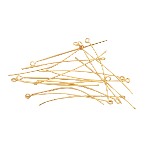 Eyepins are perfect for adding beads on to create earrings, drops for necklaces, and other jewellery making projects. 50mm Gold Plated Eyepins are a popular choice for jewellery making projects.