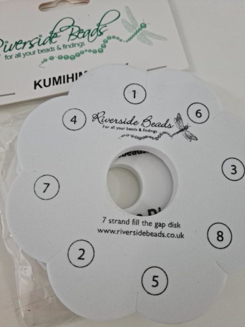 Riverside Beads 7 Strand Braiding Disk simplifies the process of creating a 7 braid Kumihimo.  Also known as fill the gap or 7 strand Kumihimo amongst other names given to this braid.