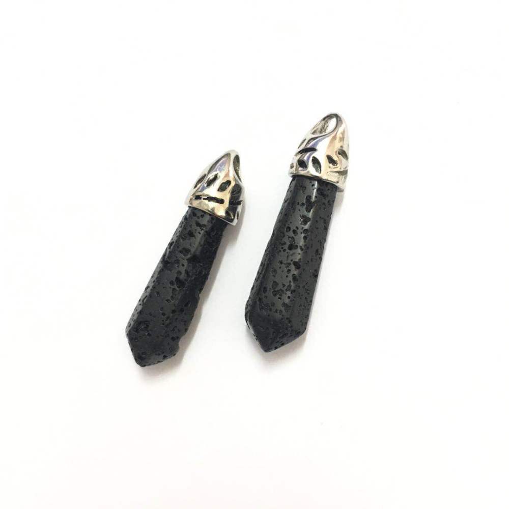 This Black Lava Rock Pendant is hexagonal prism shape with a platinum effect bail, perfect for adding to a necklace or other beading projects of your choice. These lava rocks are formed during volcanic eruptions creating these naturally textured beads. Because of their many holes and bubbles, aromatherapy oils can be used with these unique beads as they act as a natural diffuser.