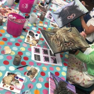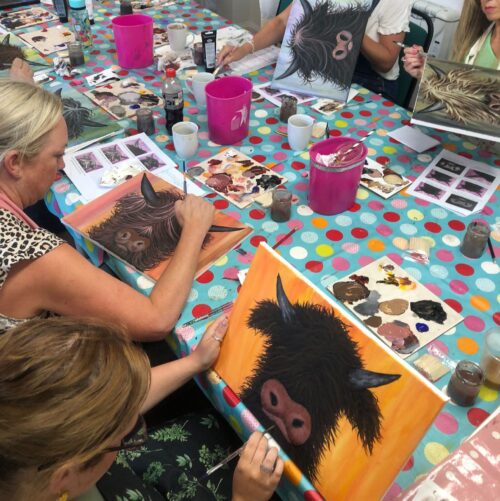 Highland Cow Painting Cuppa and Canvas Workshop