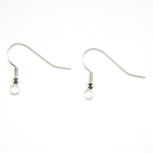 Silver Fish Hook Earring. 21mm x 16mm fishhook ear wires have a small spring and ball for an elegant finish. The base of the ear wire flips open to allow for attachment of a headpin or charm.