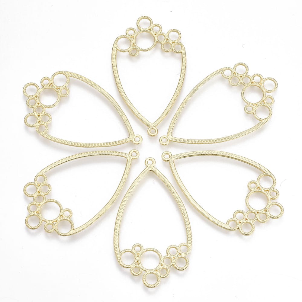 Teardrop Chandelier Earring – Gold. These golden beautiful earrings drops have multiple link connectors, perfect for making individual jewellery pieces. Also can be used as a pendant to create necklaces and bracelets. Connector link at the top and in the middle, with 10 further holes along the bottom.