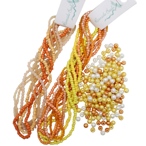The Yellow Spring Glass Bead Bundle from Riverside offers you a gorgeous selection of green shaded beads from our Indian bead collections. Receive an assortment of glass and seed beads that can be used in a variety of projects. This bundle includes 2 different types of bead strands and 1 mixed bag of 6mm glass pearls. You can view the individual products by clicking on the items below.